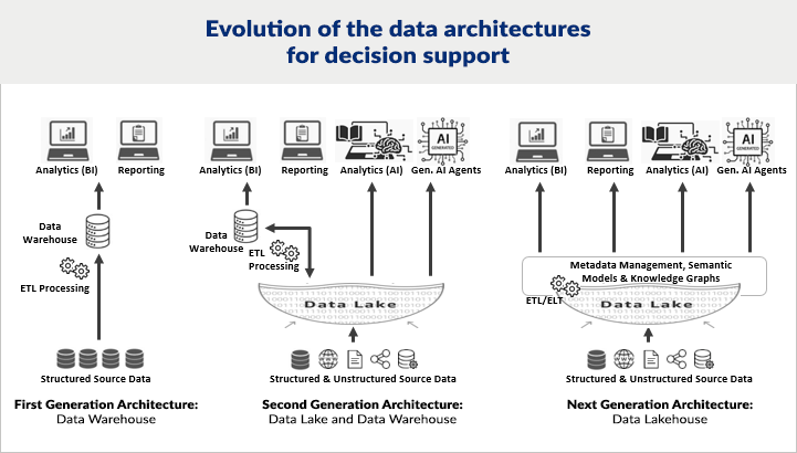 The concept of a data lakehouse, which integrates the best features of both data lakes and data warehouses and adds a semantic layer for contextualization, emerges as a compelling solution.